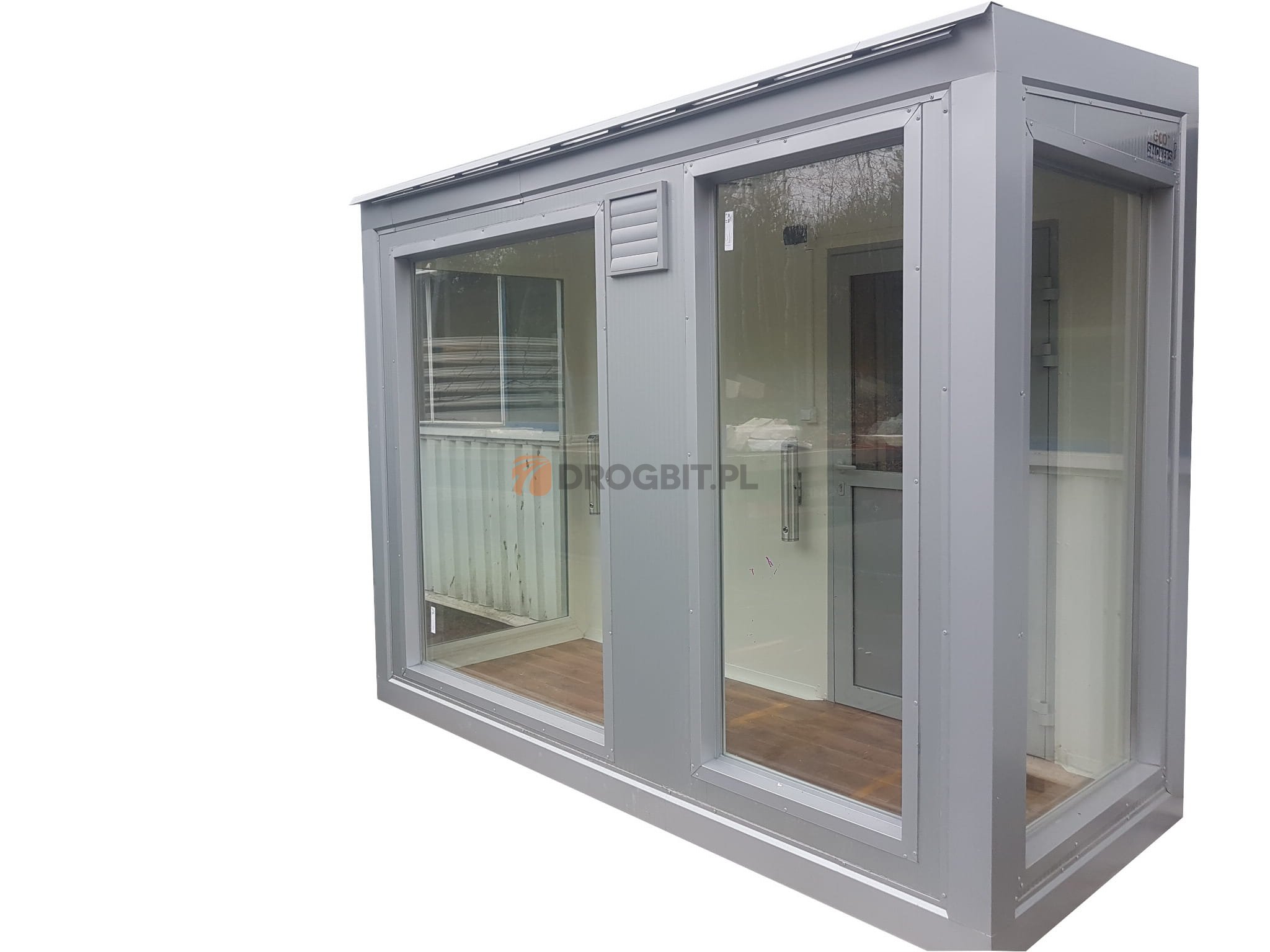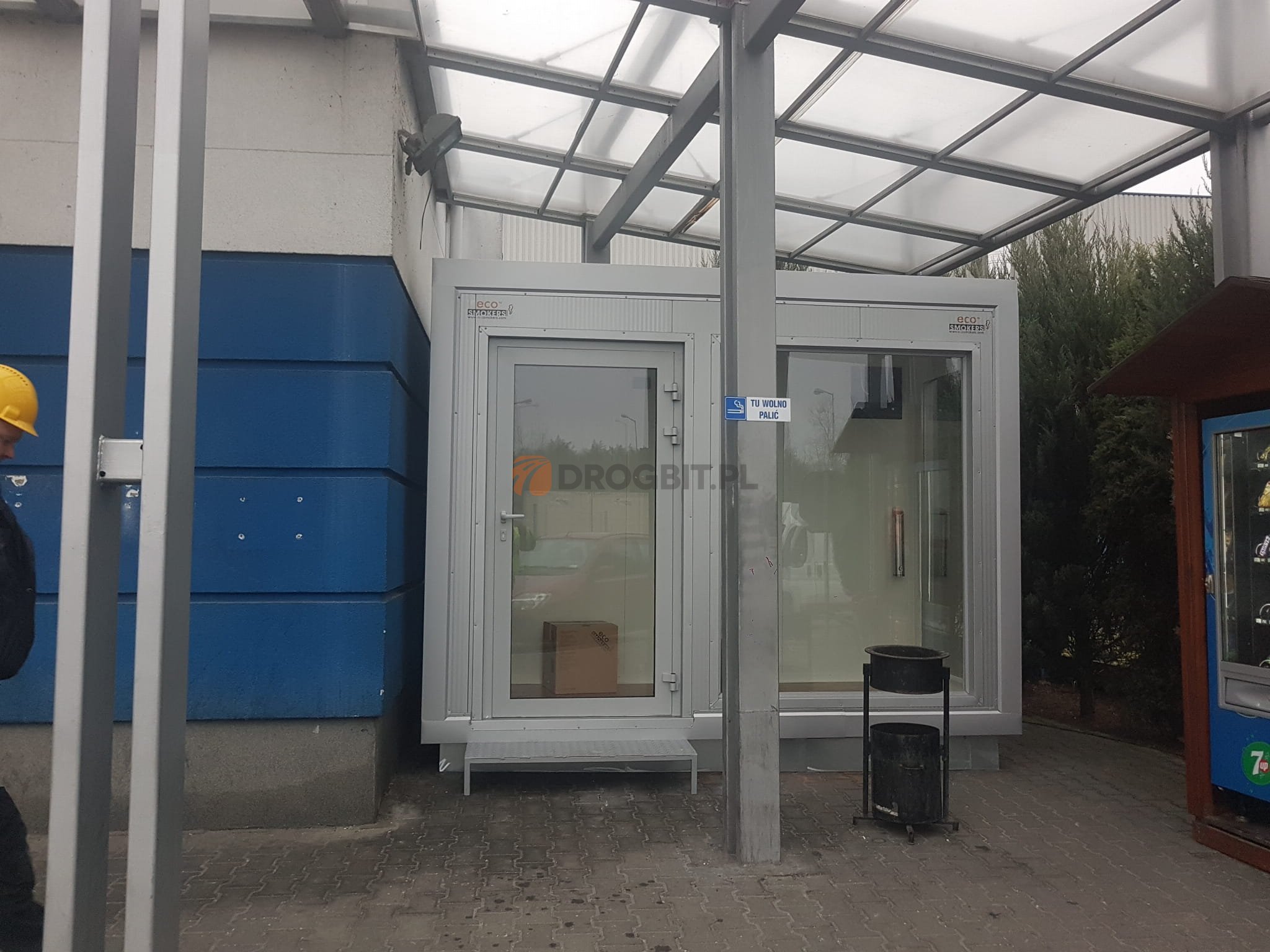 Kabina dla palących jest praktycznym oraz tanim rozwiązaniem na postawienie budki na parkingach, placach czy przed biurami. Palarnia nie wymaga przygotowania fundamentów i można ją zainstalować nawet w kilka godzin. Ściany i dach palarni jest wykonany z płyty PWS-S 100 T o grubości 100 mm. Istnieje możliwość doboru wybranego koloru z palety RAL.