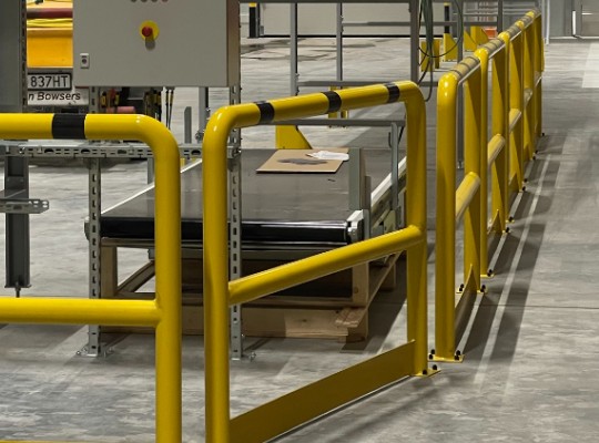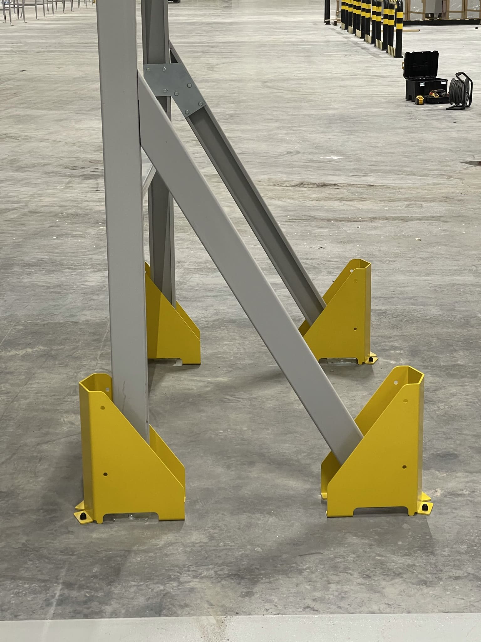 W magazynie znajdują się bardzo wysokie konstrukcje taśmociągów. Dlatego to ważne, aby były dobrze zabezpieczone. Do takich punktów idealnie nadają się odbojnice regałowe oraz odbojnice narożne.