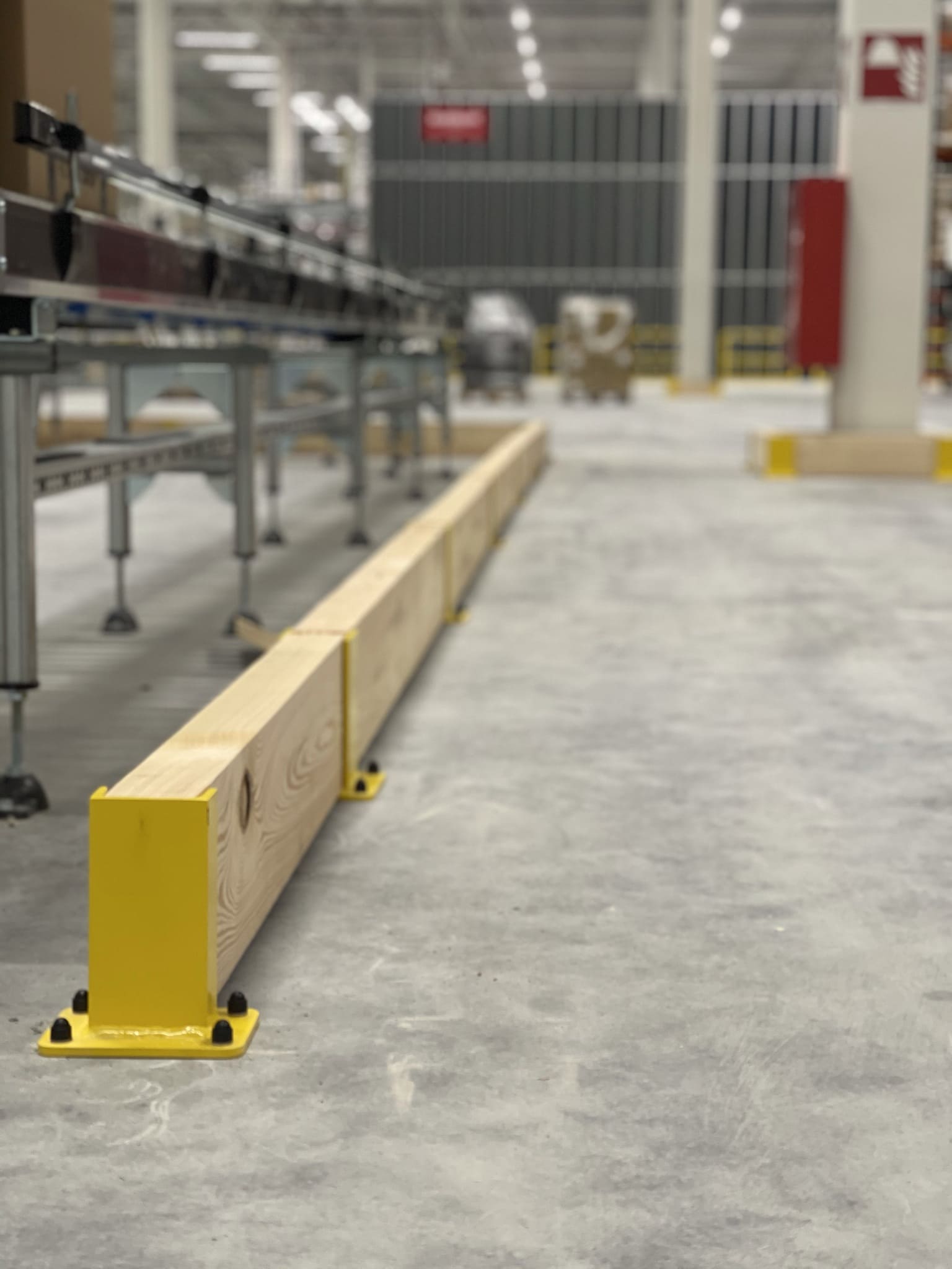 Drewniane odbojnice sprawdzają się do zabezpieczenia długich odcinków. Dlatego zaproponowaliśmy je do ochrony ścian w magazynie. Dzięki swojej elastyczności, drewniane odbojnice są w stanie zamortyzować siłę uderzenia przez wózek widłowy. Odbojnice drewniane mają dodatkowe stalowe wsporniki, które są wykonane z grubościennych wsporników. Takie zabezpieczenie gwarantuje ochronę przed zniszczeniami na całym odcinku.