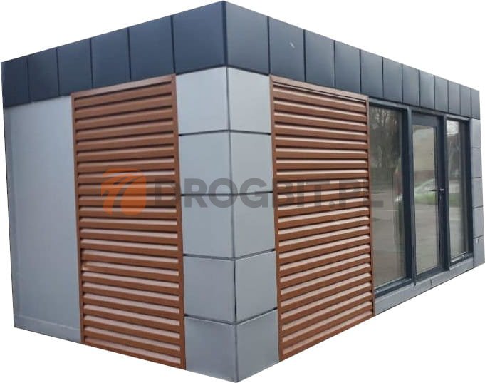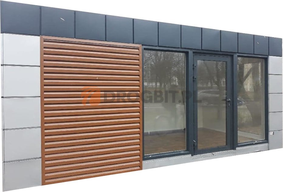 Pawilon handlowy z OSC i PCV jest praktycznym oraz tanim rozwiązaniem na postawienie budki na parkingach, placach czy przed biurami. Pawilon nie wymaga przygotowania fundamentów i można ją zainstalować nawet w kilka godzin. Ściany i dach pawilonu są wykonany z płyty PWS-S 100 T o grubości 100 mm. Współczynnik przenikania ciepła wynosi 0,39 W/m² K. Istnieje możliwość doboru wybranego koloru z palety RAL.