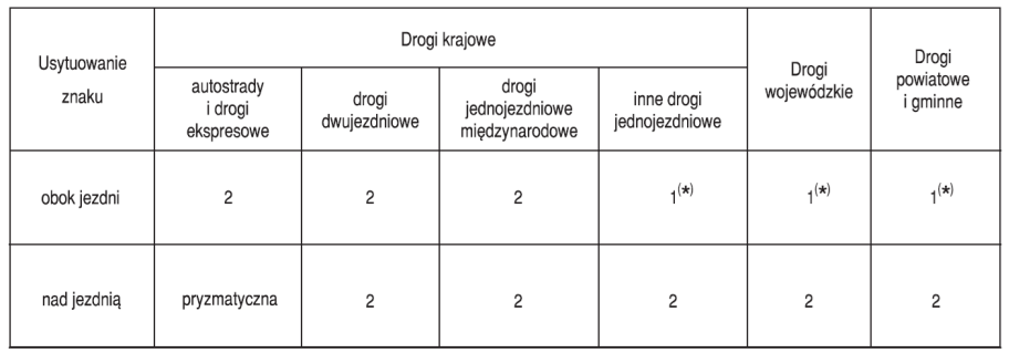 Źródło: Załącznik do dziennika Ustaw nr 220 poz. 2181 z dnia 23 grudnia 2003 roku - Szczegółowe warunki techniczne dla znaków i sygnałów drogowych oraz urządzeń bezpieczeństwa ruchu drogowego i warunki ich umieszczania na drogach.