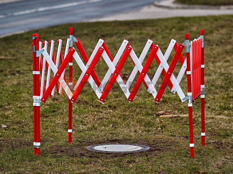 Bariery nożycowe (bariery harmonijkowe, bariery studzienkowe) należą do systemu zabezpieczeń o charakterze ochronno-ostrzegawczym. Idealnie sprawdzają się przy wszelkiego rodzaju pracach remontowych, instalatorskich czy montażowych. To doskonały wybór np. dla firm z sektora wodno-kanalizacyjnego, gazowniczego, drogowego lub energetycznego. Skutecznie zabezpieczają miejsca niebezpieczne bądź czasowo wyłączone z eksploatacji, np. wykopy, włazy czy studzienki. Są lekki, łatwe do przewożenia, składania i rozkładania.