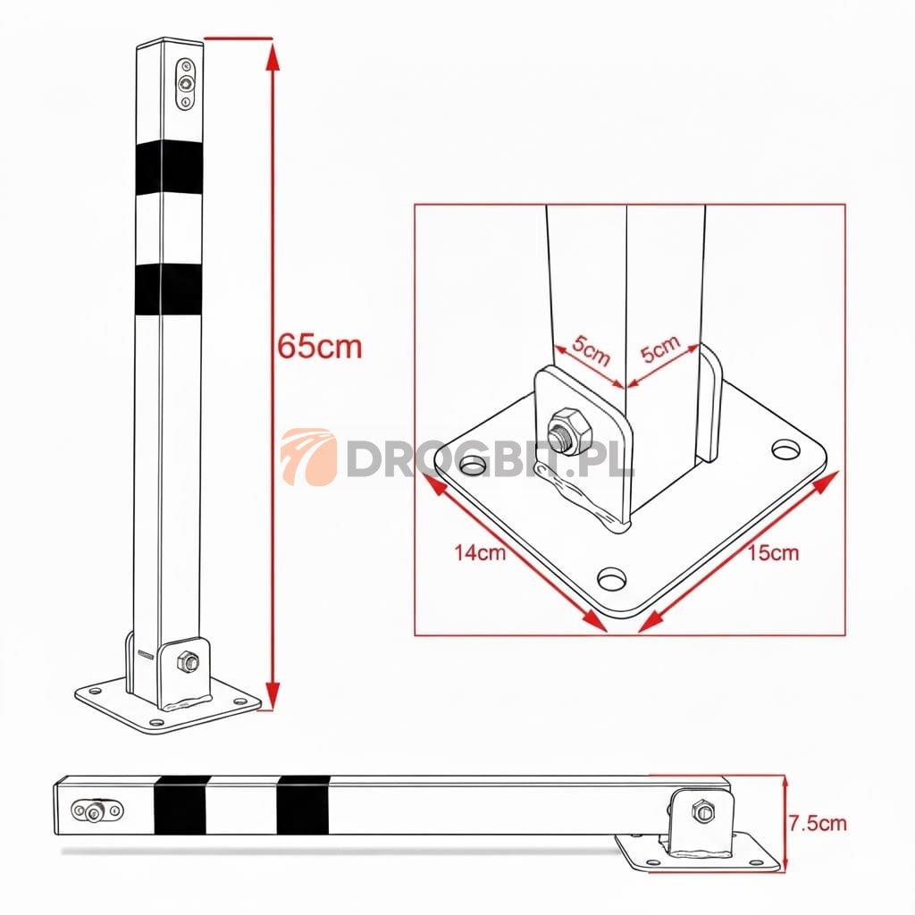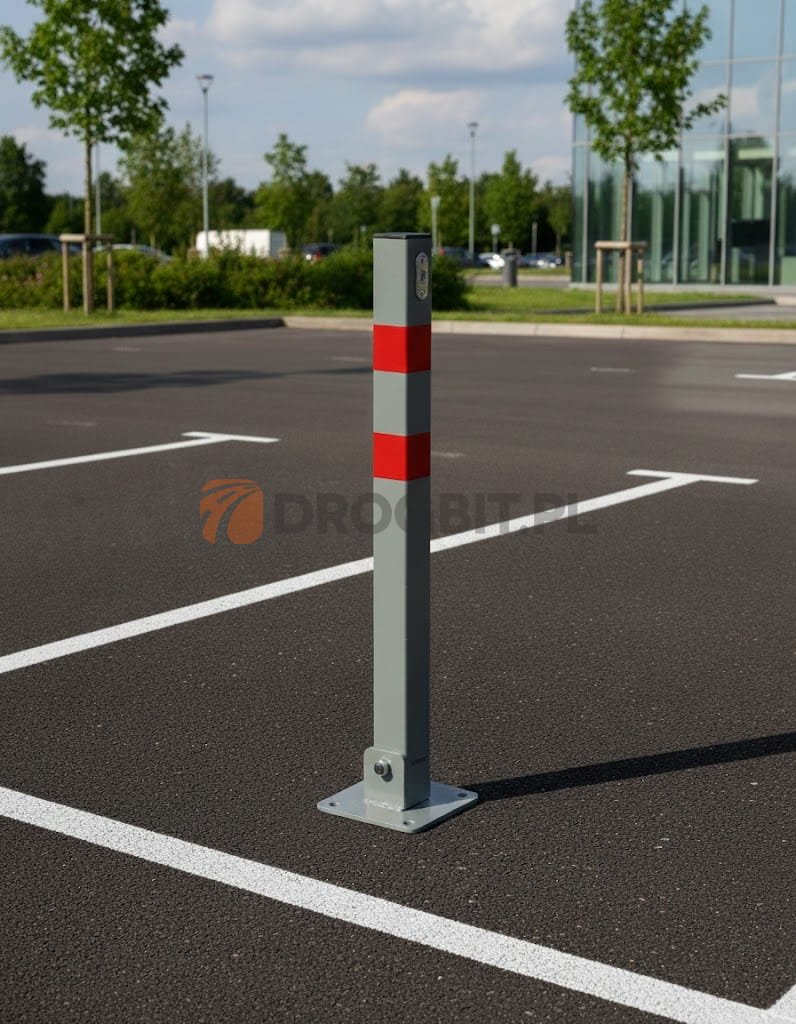 Standardowa blokada parkingowa typu słupek. Zabezpieczana automatycznym zamkiem samozatrzaskowym (zestaw zawiera 3 klucze). Zamek wyposażony jest w praktyczną zaślepkę chroniącą mechanizm przed zabrudzeniem i kurzem. Konstrukcja jest trwała, i zabezpieczona powłoką farby proszkowej. Dodatkowe odbojniki skutecznie minimalizują ryzyko uszkodzenia powierzchni słupka.
