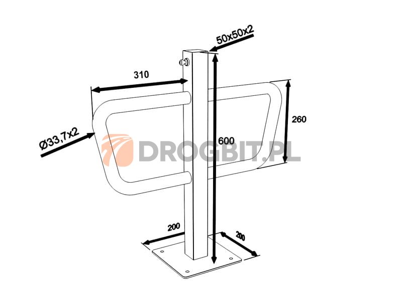 Blokada parkingowa (blokada zamykana, bariera wygradzająca, zapora, przegroda, urządzenie parkingowe) - służy do wygradzania placów oraz miejsc parkingowych przed zajęciem przez pojazdy do tego nieuprawnione. Blokada parkingowa "wzór" wykonana ze stali nierdzewnej, zamykana za zamek samozatrzaskowy (w komplecie 2 szt. kluczyków), wyposażona w zaślepkę zapobiegającą dostawaniu się zanieczyszczeń do wewnątrz zamka. Blokada posiada odbojniki zapobiegające obiciom.
