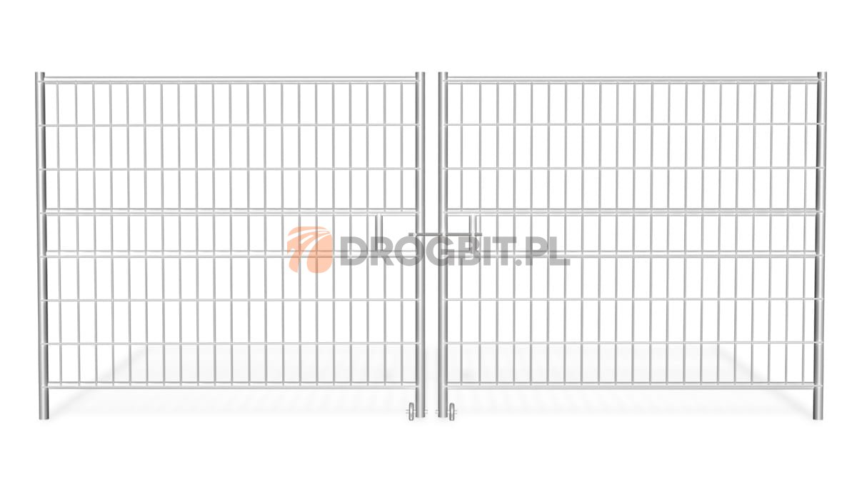 Brama dwuskrzydłowa ażurowego ogrodzenia budowlanego - to prosty w montażu ocynkowany praktyczny element systemu ogrodzeń budowlanych pozwalający na wjazd na teren budowy.