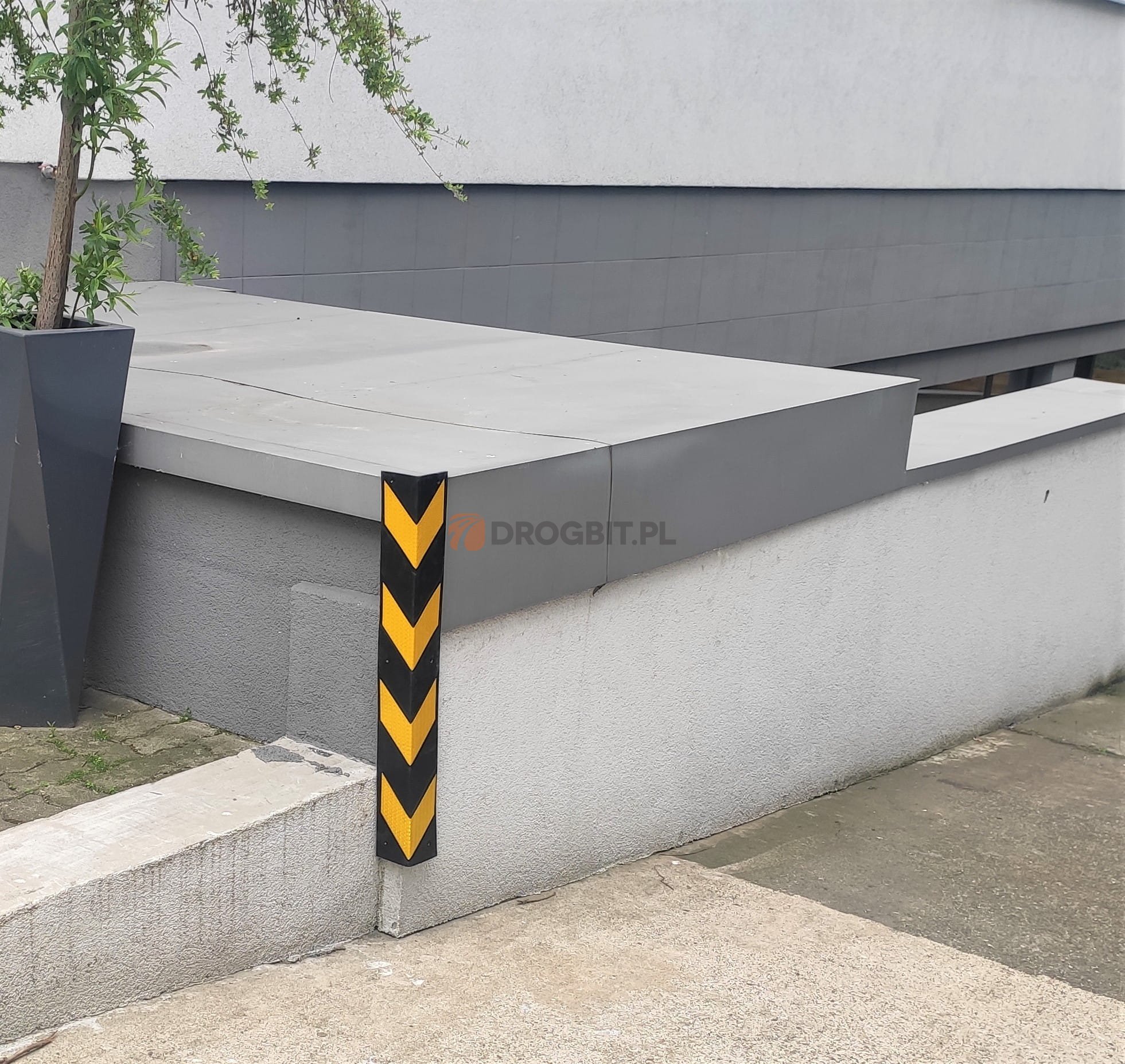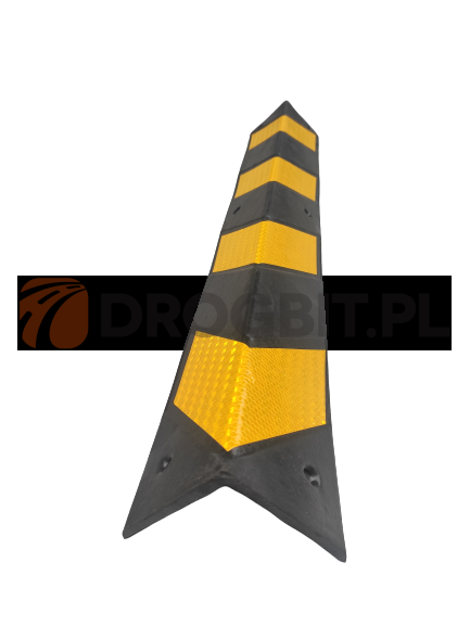Gumowa i odblaskowa odbojnica sprawdzi się podczas zabezpieczenia narożników ścian budynków. Nadaje się do wjazdu do garażu, przy halach produkcyjnych oraz magazynach. Odbojnicę przykleja się na narożnik jej gumowa struktura amortyzuje uderzenie samochodu, a także zabezpiecza pojazd przed przetarciami.