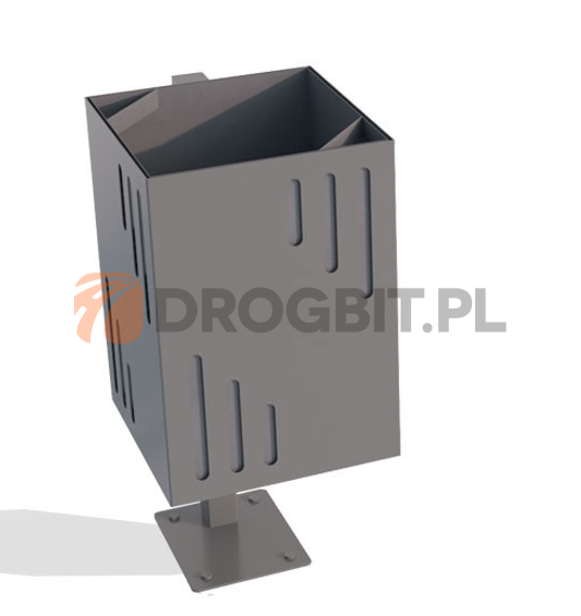 Kosz na odpady o pojemności 60 litrów. Kosz wykonany jest z blachy 1,5 i 1 mm. Istnieje możliwość wyboru materiału kosza - może to być stal ocynkowana i malowana oraz stal nierdzewna. Kosz jest wyposażony w popielnicę, dzięki którym oddzielają się niedopałki po papierosach od śmieci. Zapobiega to ewentualnemu zapaleniu się śmieci.