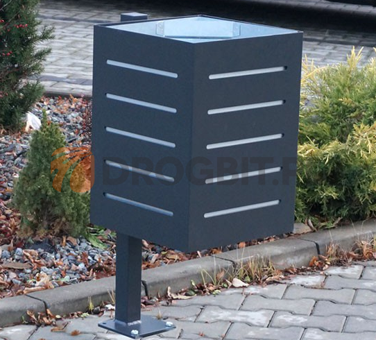 Kosz kwadratowy na odpady Axel na słupku II 60 litrów