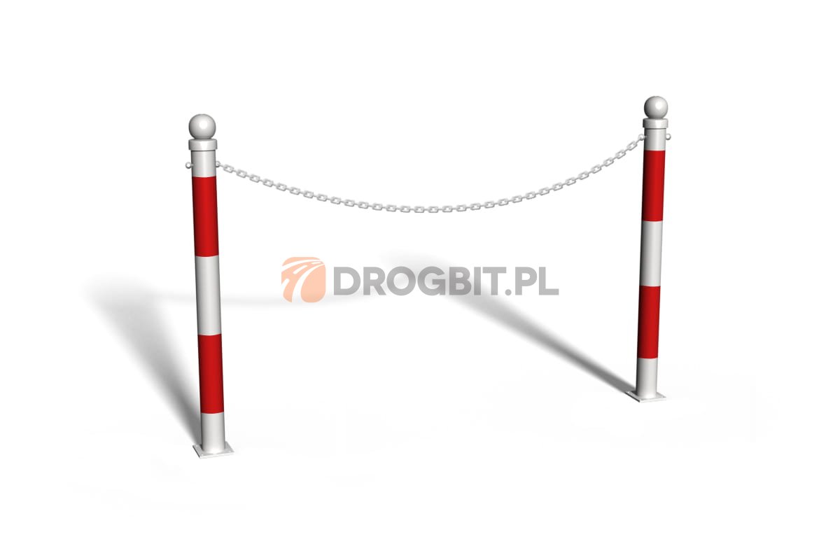 Bariera drogowa U-12b - model z kulą - składa się z jednego słupka z zaczepami oraz łańcucha (1 lub 2 rzędy). W czasie montażu barier łańcuchowych początkowy powtarzalny element (słupek + łańcuch) łączy się z kolejnym powtarzalnym modułem (słupek + łańcuch). Powstały w ten sposób odcinek wygrodzeń zamyka tzw. słupek kończący. Cena dotyczy 1 słupka i łańcucha (1 lub 2 rzędy). Odpowiednią wersję bariery łańcuchowej (z 1 lub 2 rzędami łańcucha) należy wybrać z rozwijanej listy, która znajduje się pod ceną produktu. Bariery łańcuchowe U-12b są montowane głównie wzdłuż jezdni, gdzie występuje duże natężenie ruchu pieszych, w obrębie skrzyżowań, na których wskazane jest kierowanie pieszych na wyznaczone przejścia oraz w innych miejscach, gdzie zachodzi potrzeba ochrony pieszego.