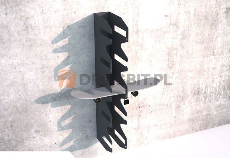 Stojak na deskorolki ścienny zajmuje mało miejsca i zabezpiecza deskorolki przed kradzieżą. Stojak wykonany jest z blachy 3mm. Stojak pomieści 5 deskorolek.