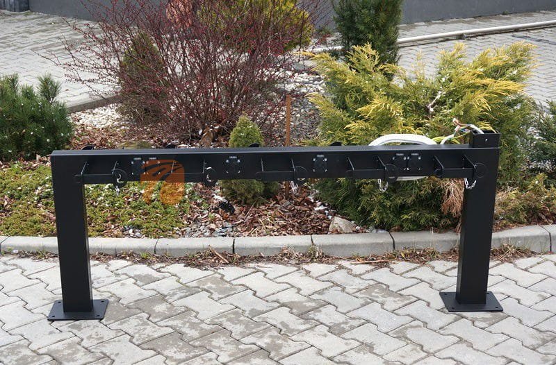 Stojak na hulajnogi elektryczne dwustronny pozwala na zaparkowanie 10 hulajnóg. Stojak posiada 12 gniazd do ładowania pojazdów oraz zabezpiecza je przed kradzieżą dzięki specjalnemu zapięciu. Klient ma możliwość wyboru koloru i stali.