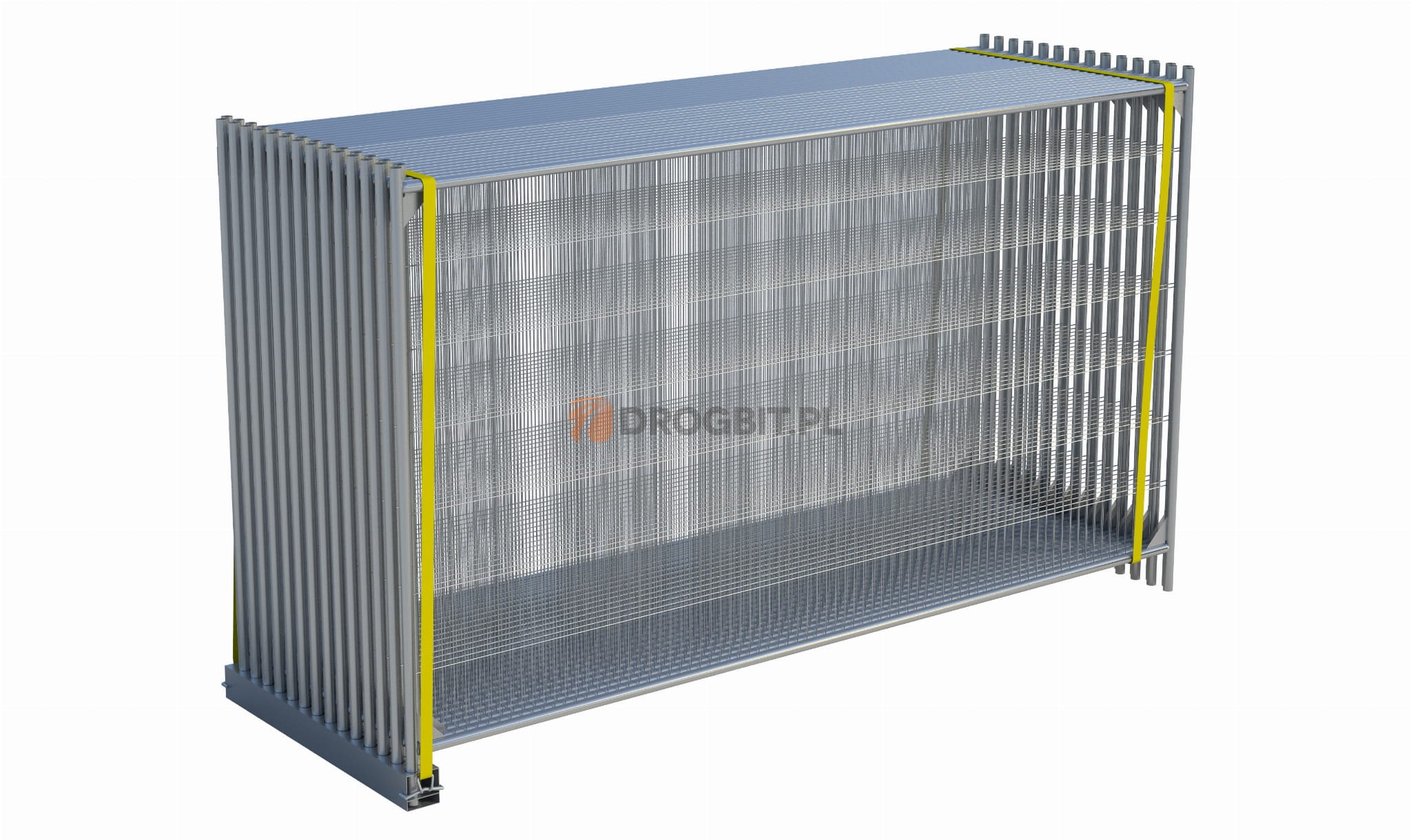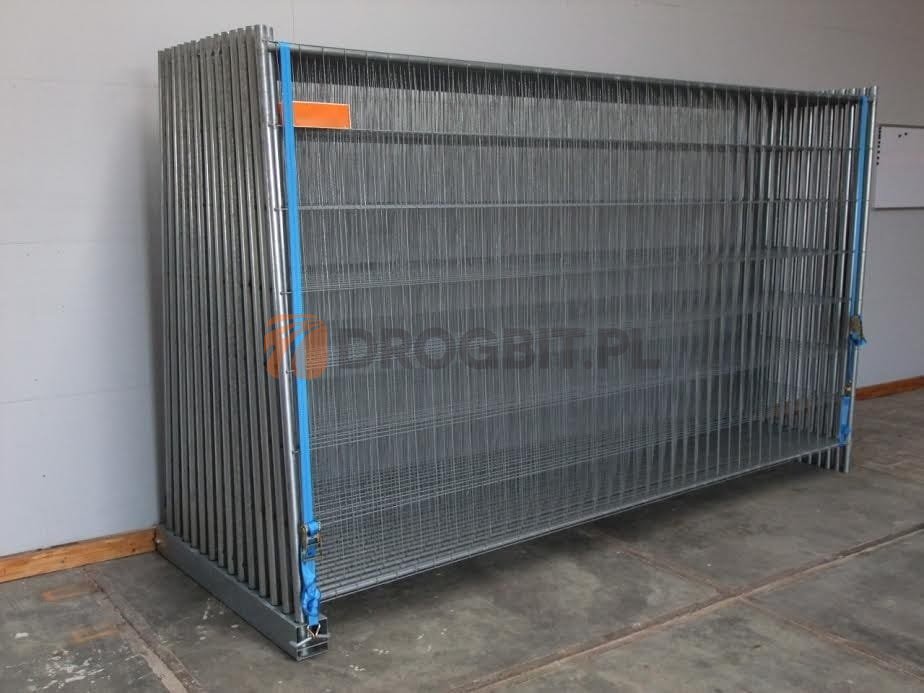 Nowoczesny i bardzo funkcjonalny stojak do bezpiecznego i wygodnego transportu oraz składowania przęseł tymczasowych (do 28 sztuk). Stojak jest przystosowany do każdego typu ogrodzeń przestawnych: niskich, wysokich, ażurowych i pełnych. Zapewnia bezpieczne magazynowanie przęseł we właściwej dla nich pozycji pionowej i ochrania je przed potencjalnymi uszkodzeniami w transporcie i przy składowaniu. Dodatkowo stanowi atrakcyjną cenową alternatywę w stosunku do ciężkich palet stalowych.