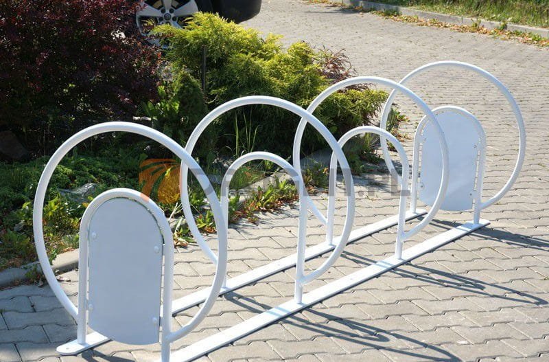 Stojak rowerowy Guscio zapewnia 8 miejsc parkingowych dla rowerów. Stojak cechuje się oryginalnym kształtem oraz miejscami reklamowymi po obu stronach stojaka. Cena obejmuje oklejenie tabliczek według projektu klienta.
