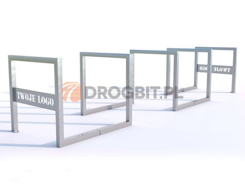 Stojak na rowery typu U, który przez połączenie tworzy jedną konstrukcję. Stojak zapewnia miejsce parkingowe dla 10 rowerów. Stojak wyróżnia się ciekawym kształtem oraz oferuje bezpieczne i solidne miejsce parkingowe dla jednośladów. Stojak z reklamą w formie wycinki laserowej według projektu klienta