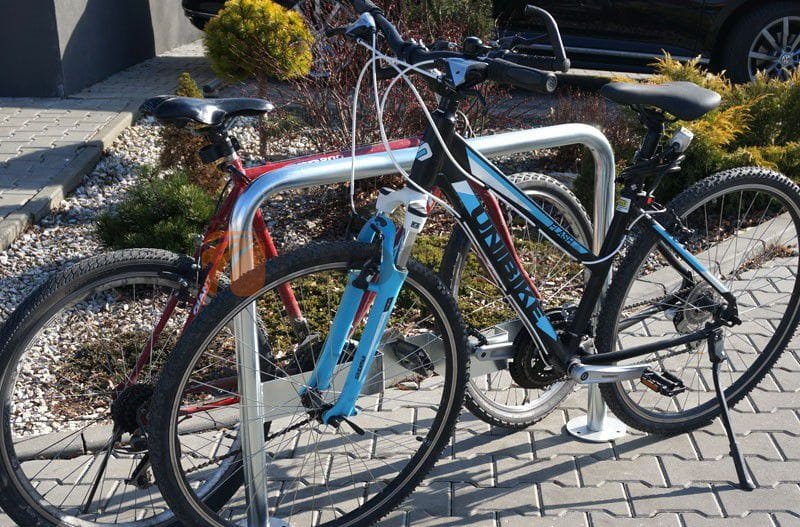 Stojak rowerowy U-17 posiada specjalny, stabilizujący profil. Dzięki dodatkowej poprzeczce stojak może być przymocowany do niej za ramę lub za pedał. Cena stojaka zawiera wycinkę laserową w poprzeczce - może być to logo bądź dowolny tekst reklamowy. Połączenie funkcjonalności z reklamą to jeden z najpopularniejszych rozwiązań nowoczesnych firm.