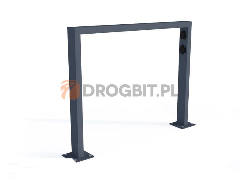 Stojak na rowery typu U, który posiada dwa gniazda do ładowania rowerów elektrycznych. Stojaki w opcji do wbetonowania nie posiadają maskownic. Rozetki maskujące można zakupić tutaj.