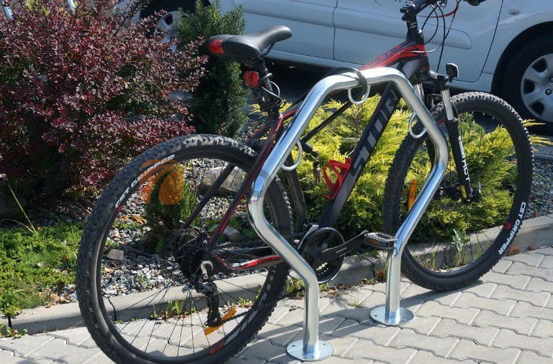 Stojak rowerowy typu U o unikalnym kształcie. Stojak zapewnia bezpieczne oparcie dla rowerów, jednocześnie stanowiąc oryginalny typ stojaka rowerowego. Wyposażony jest w zapięcia rowerowe.
