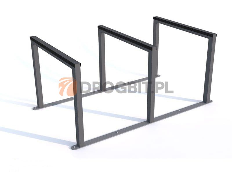 Stojak rowerowy UG2 powstał poprzez połączenie kompletu 3 barierek w jeden zestaw. Barierki są wyposażone w osłonę gumową, która stabilizuje rower i zapobiega zarysowaniu ramy. Stojak daje możliwość ustawienia zestawu pod pożądanym kątem (90 - 45 stopni).