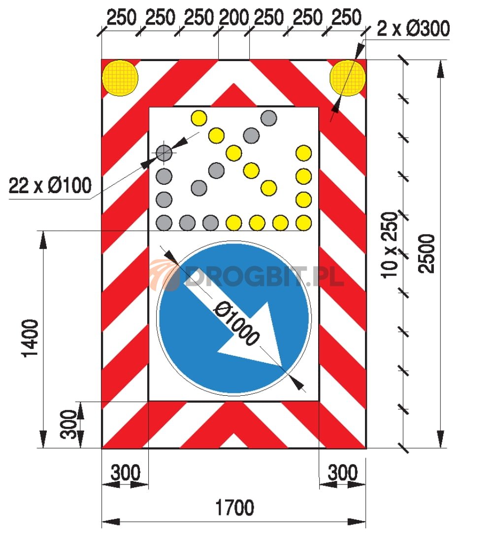 • strzała świetlna: lampy o średnicy ϕ100 mm - ilość sztuk do wyboru przy zamawianiu (opcjonalnie lampy o średnicy ϕ200 mm),