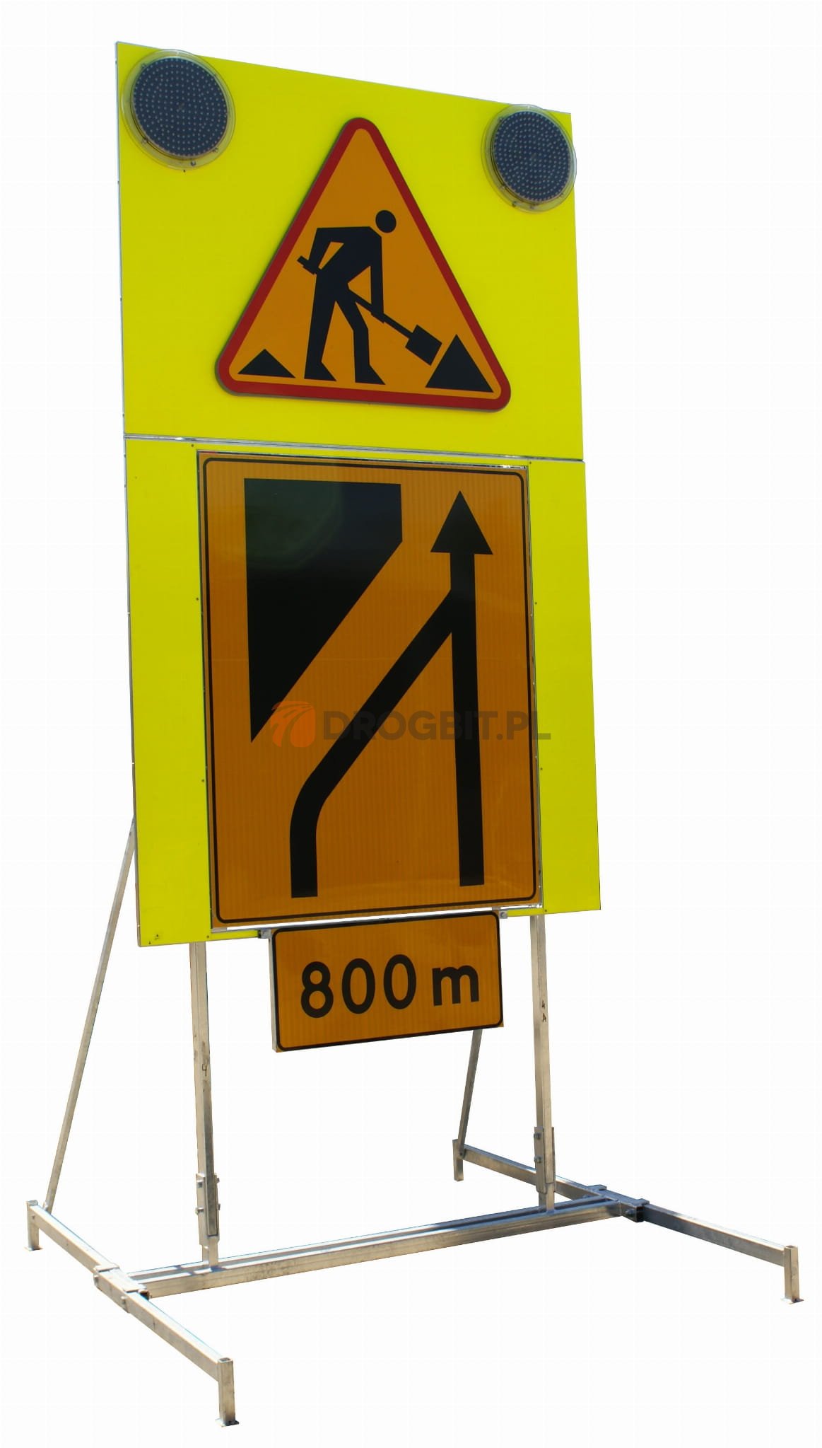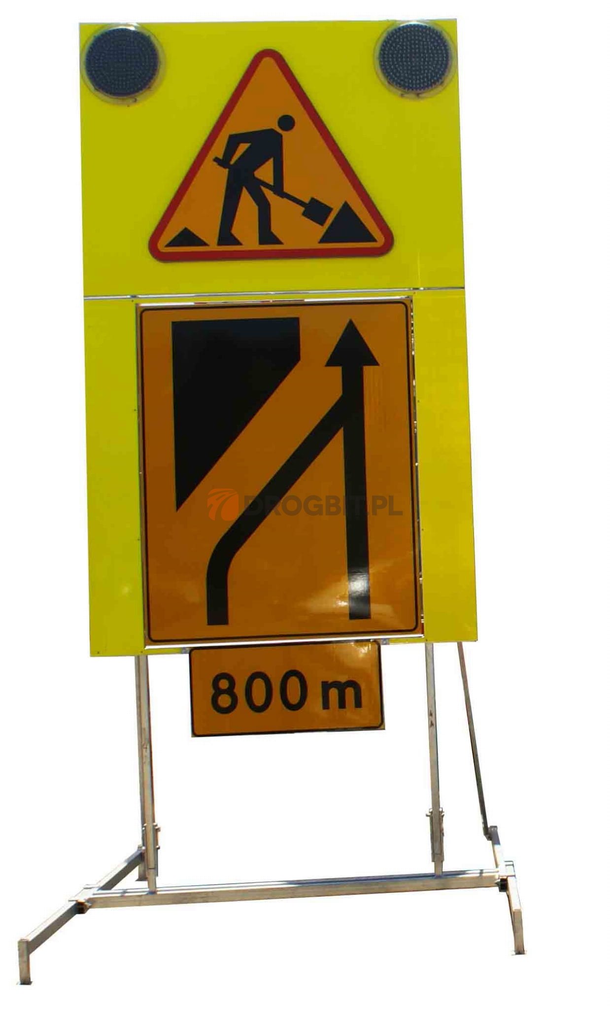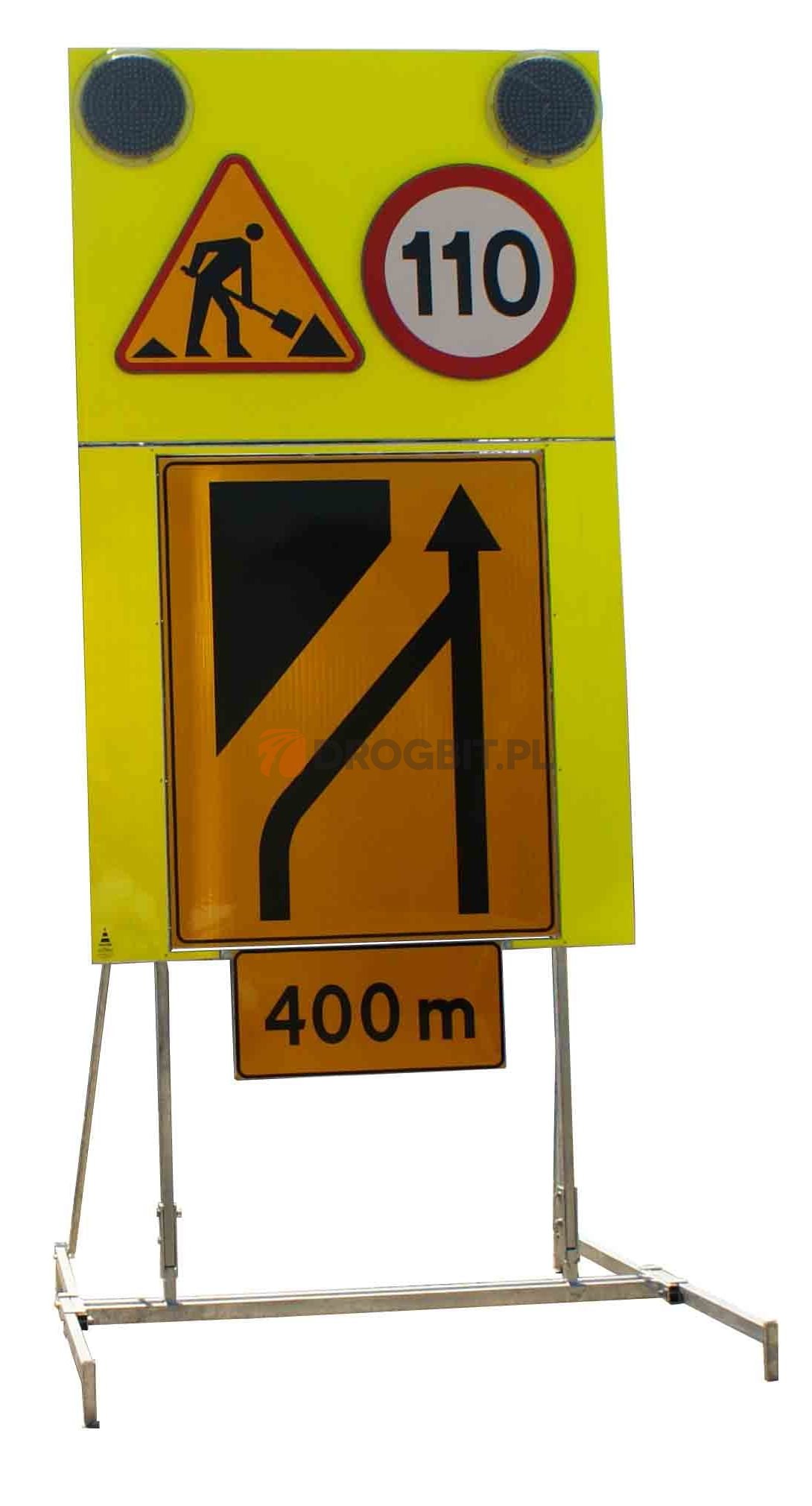 - tablica U-27 z magnetycznym znakiem typu F (znak F zbudowany jest z 8 magnetycznych elementów, które umożliwiają ułożenie na znaku przewężenia w prawo i w lewo),