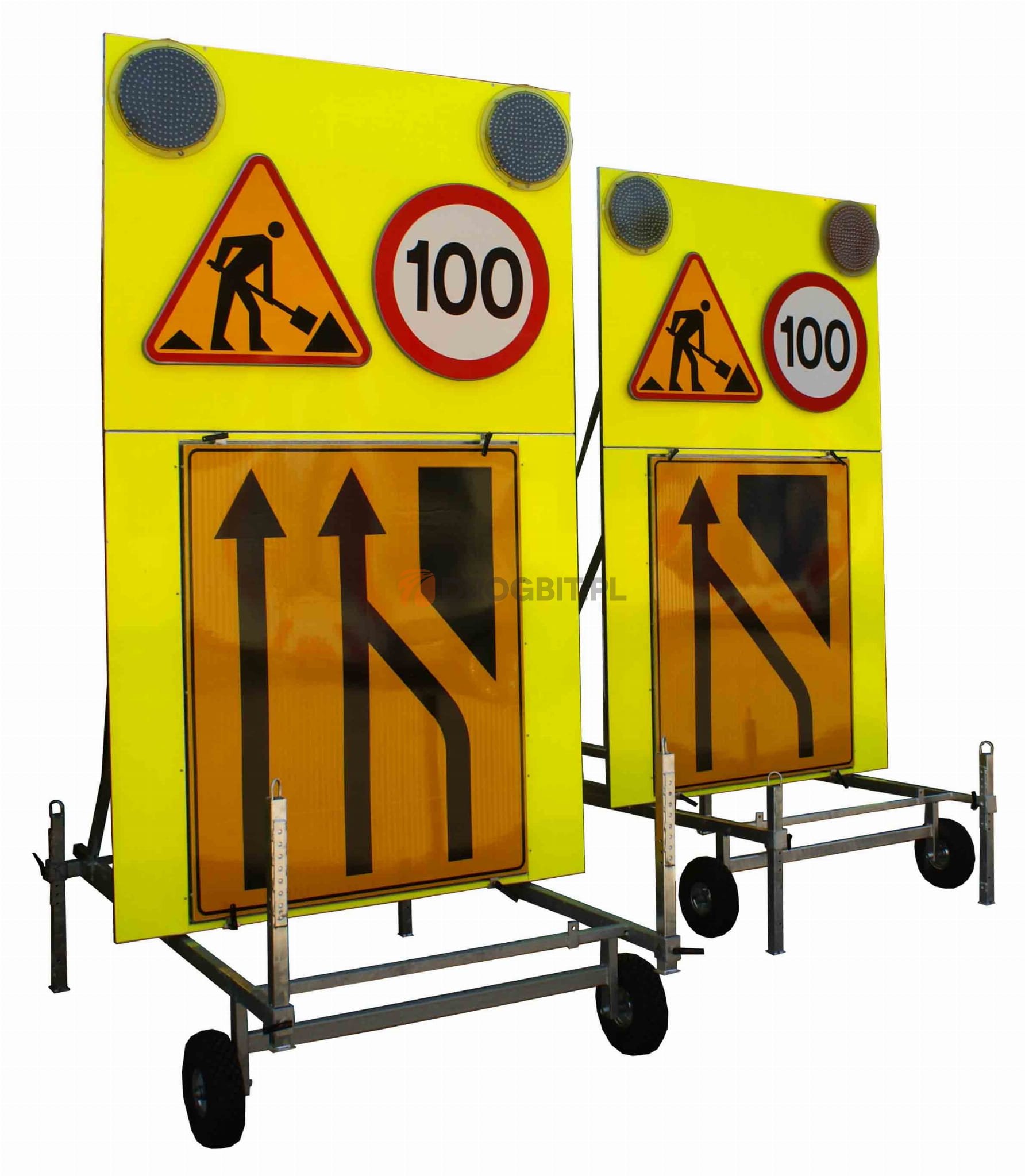 - tablica U-27 MOBILNA z wybranymi znakami – tablica umieszczona na konstrukcji mobilnej („wózkowej“); umożliwia przemieszczanie tablicy na terenie danej inwestycji drogowej czy budowlanej. Konstrukcja mobilna nie jest dostosowana do jazdy na drogach czy autostradach, ale jest zaprojektowana tak, by możliwy był jej dalszy transport np. przyczepą typu Silezja.