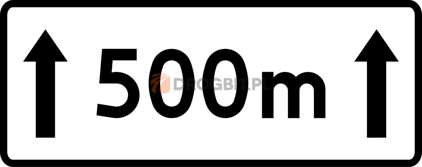 - T-1a - tabliczka wskazująca odległość znaku informacyjnego od początku (końca) drogi lub pasa ruchu