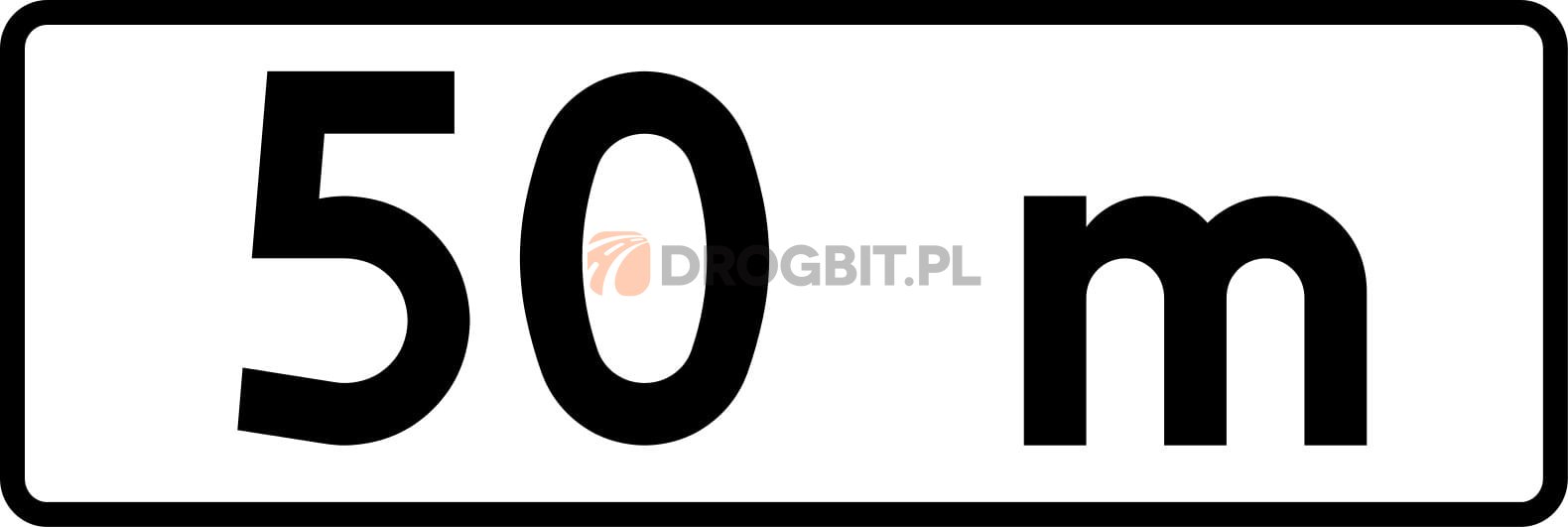 Tabliczka T-21 wskazująca odległość znaku od miejsca, od którego lub w którym zakaz obowiązuje