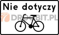 Tabliczka T-22 wskazująca, że znak nie dotyczy rowerów jednośladowych