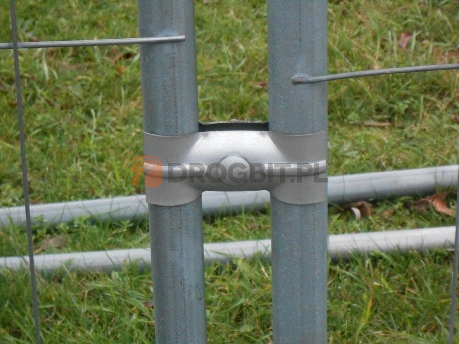 Złączka standard - ocynkowany element systemu ogrodzeń tymczasowych służący do łączenia ze sobą kolejnych przęseł ogrodzeniowych zarówno ażurowych jak i pełnych.