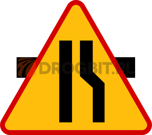 Znak drogowy ostrzegawczy - A-12b - Zwężenie jezdni – prawostronne