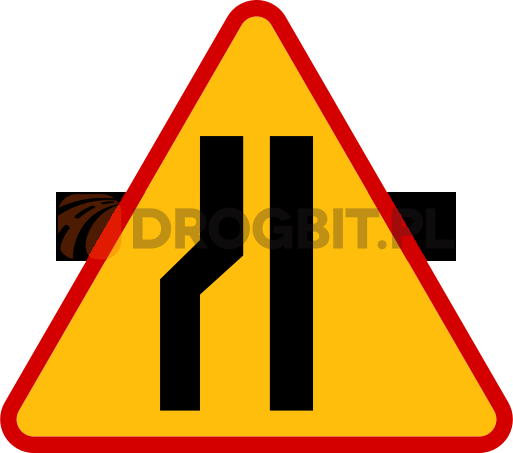 - Znak A-12b "zwężenie jezdni - prawostronne" Może występować ze znakiem A14 oraz B33