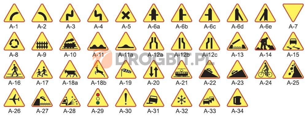 Lista znaków ostrzegawczych typu A
