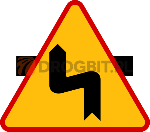 Znak drogowy ostrzegawczy - A-4 - Dwa niebezpieczne zakręty - pierwszy w lewo