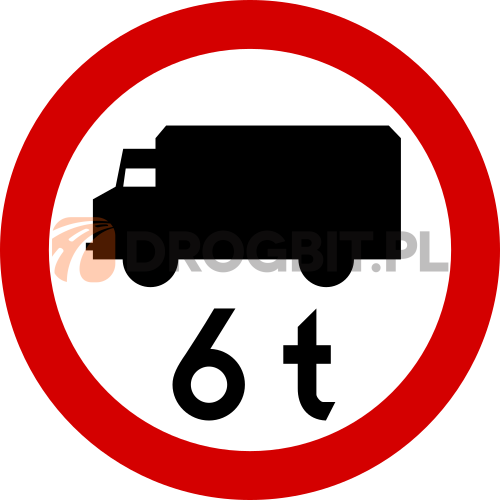 Znak drogowy zakazu - B-5a - Zakaz wjazdu pojazdów i zespołów pojazdów o dopuszczalnej masie całkowitej większej niż określona na znaku