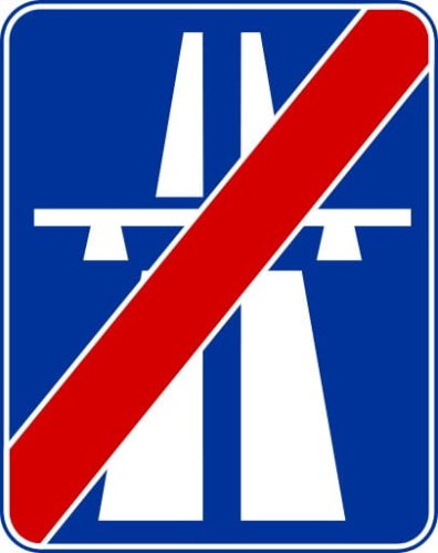 Znak informacyjny D-10 Koniec autostrady 1200x1500 mm