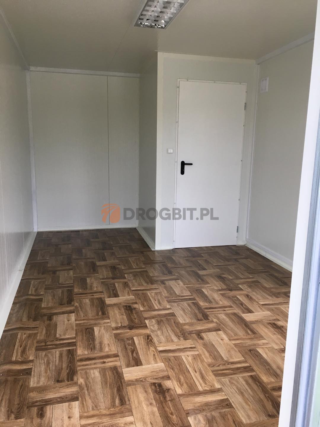 - Podłoga: płyta OSB pokryta wykładziną PCV, warstwa dociepleniowa o grubości 100 mm