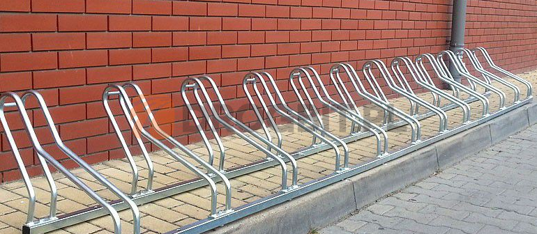 Stojak na rowery Campania pomieści jednocześnie 4 rowery różnego typu. Poszczególne stanowiska są od siebie oddalone o 42 cm, co umożliwia szybkie i sprawne użytkowanie stojaka.