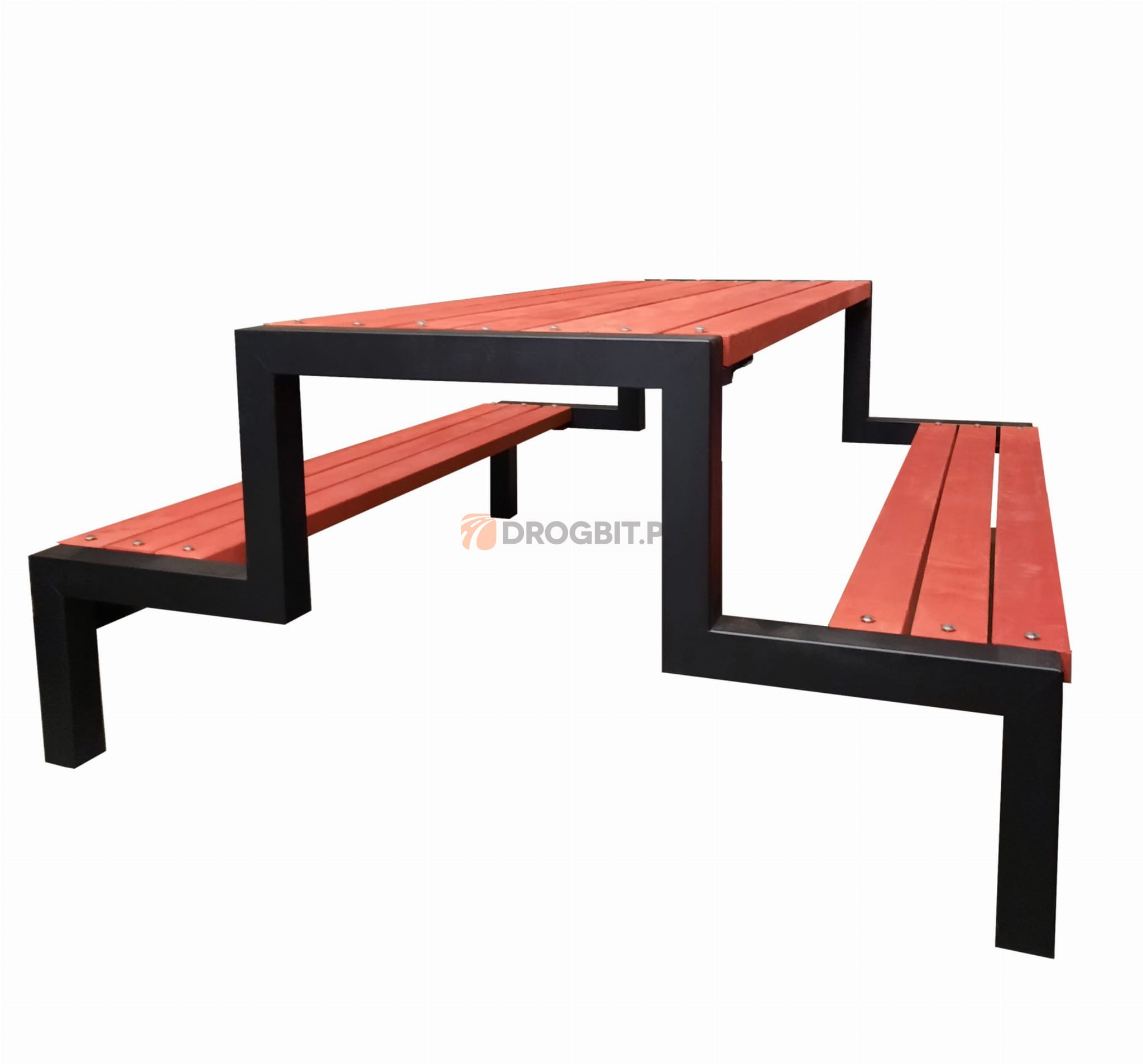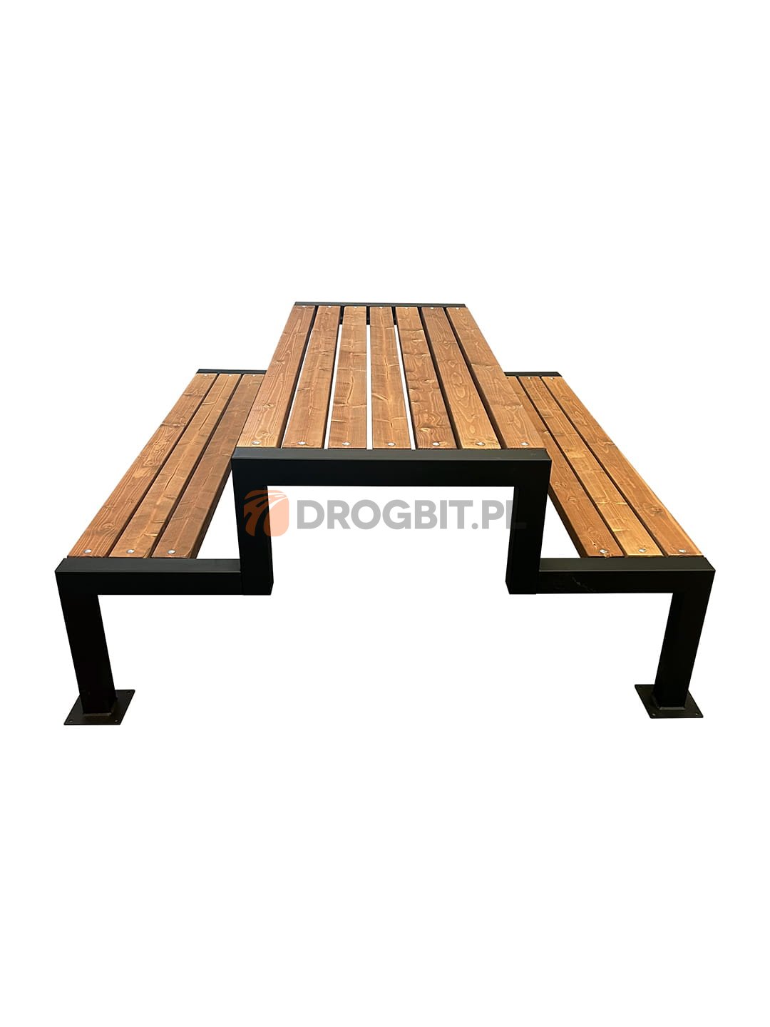 Stół piknikowy ma metalową konstrukcję. Stelaż jest ocynkowany i pomalowany proszkowo. Deski, które znajdują się na blacie oraz na siedzisku są zabezpieczone czterokrotnie. Najpierw dwukrotnie jest nakładana warstwa impregnatu żywicznego, następnie również dwukrotnie nakładana jest warstwa lakierobejcy żywicznej. Stół jest solidnie zabezpieczony przed niekorzystnymi warunkami atmosferycznymi oraz przed zniszczeniami wandali. Kolory elementów drewnianych i metalowych są do wyboru.