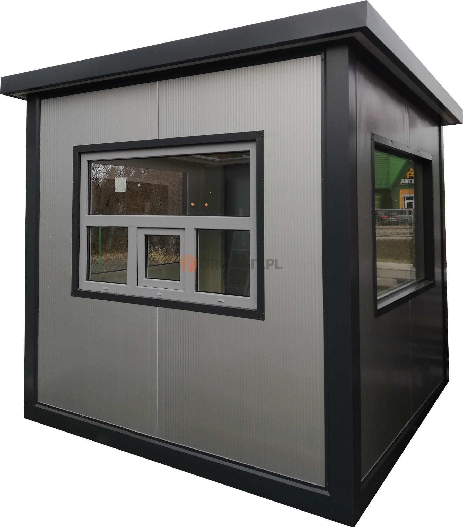 Stróżówka jest praktycznym oraz tanim rozwiązaniem na postawienie budki na parkingach, placach czy przed biurami. Stróżówka nie wymaga przygotowania fundamentów i można ją zainstalować nawet w kilka godzin. Ściany i dach stróżówki jest wykonany z płyty PWS-S 100 T o grubości 100 mm. Współczynnik przenikania ciepła wynosi 0,39 W/m² K. Istnieje możliwość doboru wybranego koloru z palety RAL.