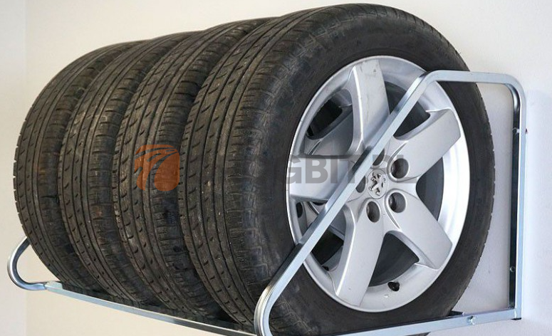 Wieszak do przechowywania 4 opon. Oparty jest na konstrukcji o profilu 20x20x1,5 mm. Stabilna i bezpieczna konstrukcja pozwala na ekonomiczne magazynowanie opon. Dzięki takiemu umieszczeniu opon można zaoszczędzić sporo miejsca. Wieszak jest skonstruowany tak, aby opony nie traciły swoich właściwości. Wieszak sprawdzi się w piwnicy, garażu oraz w warsztatach samochodowych. Stojak montuje się poprzez przykręcenie do ściany 4 kołkami rozporowymi, które są dołączone do zestawu.