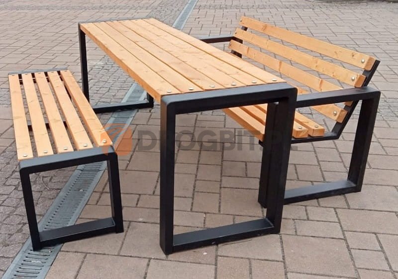 Zestaw mebli ogrodowych Grana składa się z ławy, jednej ławki bez oparcia oraz jednej ławki z oparciem. Długość zestawu to 175 cm. Zarówno ława jak i ławki są wykonane z najwyższej jakości drewna skandynawskiego. Każda z desek posiada zaoblenia i nie ma żadnych ostrych kantów. Do wykonania stołów i ław używamy najgrubszych desek, które są dostępne na rynku, mają aż 4,5 cm grubości. Wszystkie ławki są zaimpregnowane - można wybrać dowolny kolor z palety i dopasować go do innych mebli w swoim ogrodzie.